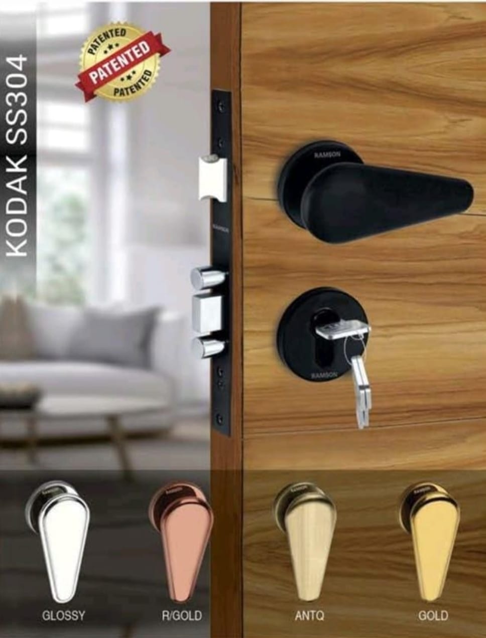 Ramson Premium Quality Stainless Steel Mortise Kodak SS Plate 304 Grade Handle With Cylinder Key – 8 inch (200mm)