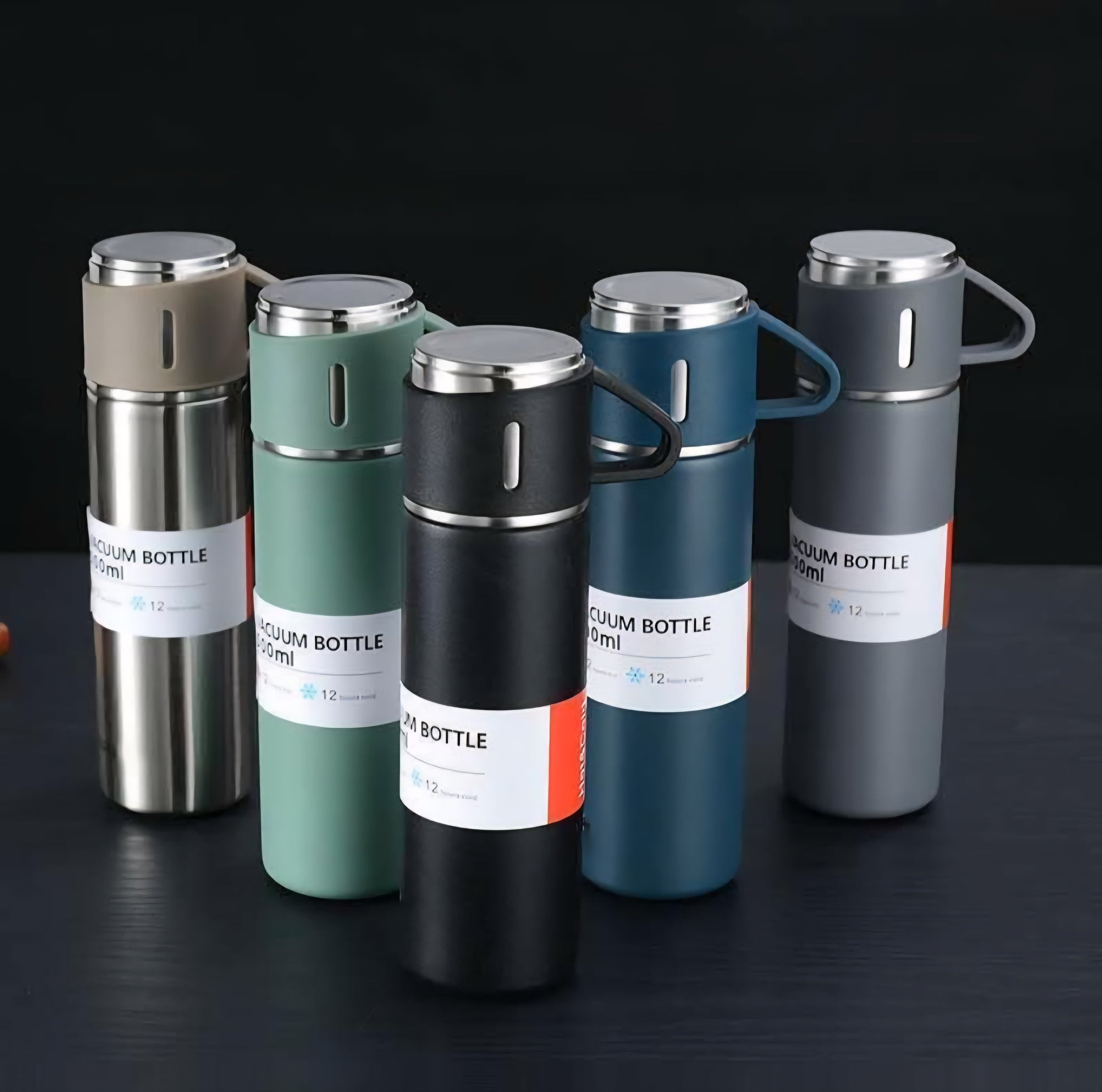 Stainless Steel Vacuum Flask Set with 2 Cups Flask Combo Keeps Liquid Tea Coffee Cold Hot Bottle Drink Water Flask Bottle 500ml Vacuum Insulated Bottle(Multicolor)